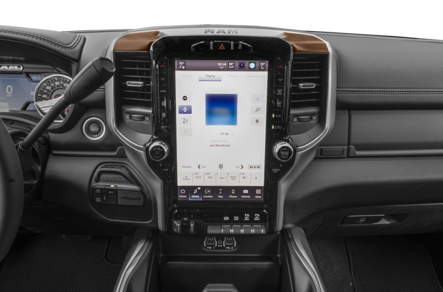 The Rebel trim takes a more aggressive approach with a unique blacked-out grille, powder-coated front and rear bumpers, and 20-inch black aluminum wheels. The Power Wagon features a distinctive black grille, 17-inch machined aluminum wheels with black pockets, and a factory-installed lift kit, setting it apart from the rest of the lineup. The Limited Longhorn trim exudes luxury with its chrome-accented grille, two-tone color options, and 20-inch polished aluminum wheels, while the range-topping Limited trim has a chrome grille, auto-leveling air suspension, and 20-inch chrome wheels.