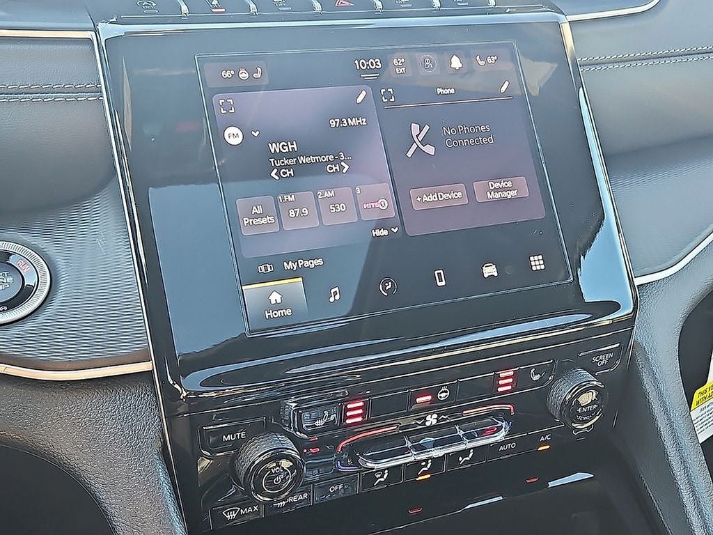 The vehicle has satellite radio capabilities. The vehicle has auto-adjust speed for safe following. This Jeep Grand Cherokee comes equipped with Android Auto for seamless smartphone integration on the road. This 2025 Jeep Grand Cherokee 's Forward Collision Warning system alerts the driver to potential front-end collisions, enhancing safety. The Jeep Grand Cherokee offers Apple CarPlay for seamless connectivity. The Jeep Grand Cherokee is pure luxury with a heated steering wheel. See what's behind you with the back up camera on this vehicle. Start this Jeep Grand Cherokee from inside with remote start. Bluetooth® technology is built into this Jeep Grand Cherokee, keeping your hands on the steering wheel and your focus on the road. This unit offers Automatic Climate Control for personalized comfort. Enjoy the convenience of the power liftgate on the vehicle. When you encounter slick or muddy roads, you can engage the four wheel drive on this model and drive with confidence.