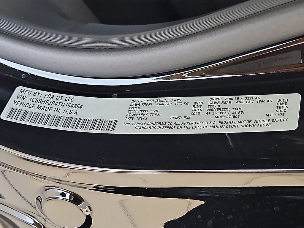 Laramie Level 2 Equipment Group: Google Android Auto; SiriusXM Radio Service; USB Host Flip; Rain Sensitive Windshield Wipers; Integrated Center Stack Radio; Front Passenger Interactive Display; Integrated Voice Command with Bluetooth®; Connectivity - US/Canada; GPS Navigation; 4G LTE Wi-Fi Hot Spot; GPS Antenna Input; SiriusXM with 360L; Global Telematics Box Module; Connected Travel and Traffic Services; Apple CarPlay; Disassociated Touchscreen Display; Secondary Active Grille Shutters; HD Radio; Smartphone as a Key Capable; 14.4" Touchscreen Display; Dual Wireless Charging Pad; Uconnect 5 Nav with 14.4" Display; Harman/kardon 19 Speaker Premium Sound; Cluster 12" TFT Color Display; Power Tailgate. Quick Order Package 21H Laramie. Night Edition: Black Headlamp Bezels; Auto Power-Folding Mirrors; 22" X 9" Forged Aluminum Wheels; Exterior Mirrors with Heating Element; Proximity Approach/departure Lamps; Auto Dim Exterior Driver Mirror; Anti-Spin Differential Rear Axle; Accent Color Door Handles; Black Interior Accents; Body Color Front Bumper; Grille Surround 3 Black Texture 2 Black; Body Color Rear Bumper with Step Pads; RAM Grille Badge - Black; Black Painted Exterior Mirrors Caps; Exterior Mirrors Approach Lamps; Accent Color Premium Power Mirrors; Exterior Mirrors with Supplemental Signals; Sport Performance Hood; Exterior Mirrors Courtesy Lamps; Black Exterior Truck Badging; Accent Color Tailgate Handle; Exterior Mirrors with Memory; Dual Exhaust with Black Tips; Convex Wide-Angle Exterior Mirror Insert; Black Tail Lamp Bezels. 22" X 9" Forged Aluminum Wheels. Anti-Spin Differential Rear Axle. Diamond Black Crystal PC. 3.92 Rear Axle Ratio. **Equipment listed is based on original vehicle build and subject to change. Please confirm the accuracy of the included equipment by calling the dealer prior to purchase.**