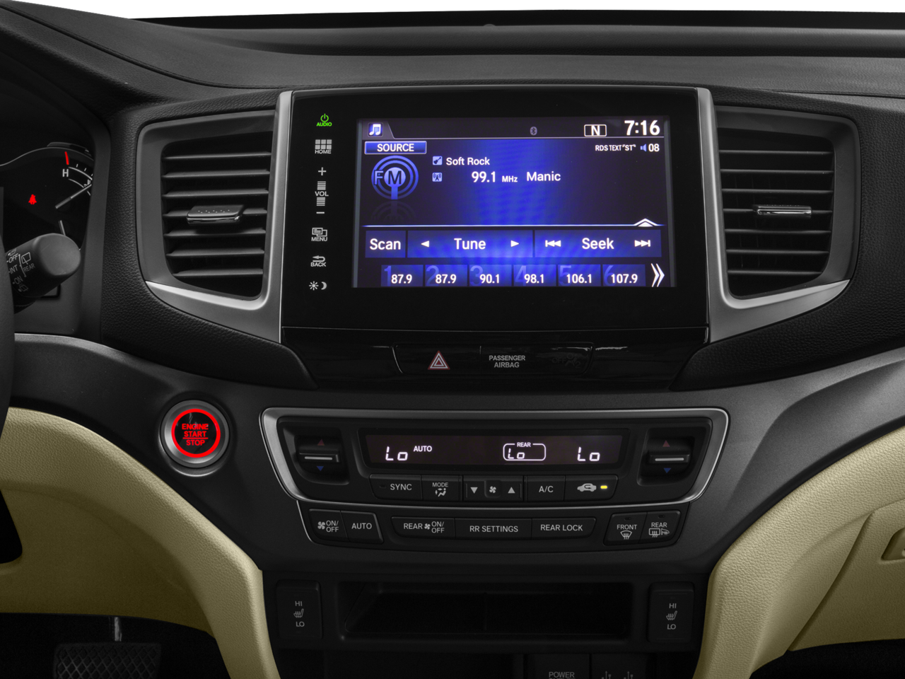 - Radio: AM/FM Audio System -inc: 225-Watt, 7 speakers including subwoofer, Bluetooth® HandsFreeLink, Bluetooth® streaming audio, MP3/auxiliary input jack, MP3/Windows Media Audio (WMA) playback capability, Radio Data System (RDS), Speed-Sensitive Volume Control (SVC), USB audio interface w/1.5-Amp and 2.5-Amp charging ports in front and 2.5-Amp charging port in center console, 8" display audio w/high-resolution WVGA (800x480) electrostatic touch-screen and customizable feature settings, HondaLink Next Generation, SMS text message function, Pandora compatibility and Song By Voice (SBV)