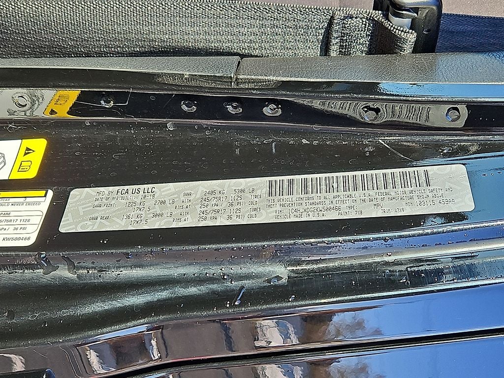 See what's behind you with the back up camera on this unit. The satellite radio system in this vehicle gives you access to hundreds of nation-wide radio stations with a clear digital signal. This model is equipped with the latest generation of XM/Sirius Radio. Bluetooth® technology is built into this mid-size suv, keeping your hands on the steering wheel and your focus on the road. Quickly unlock it with keyless entry. Set the temperature exactly where you are most comfortable in the vehicle. The fan speed and temperature will automatically adjust to maintain your preferred zone climate. The vehicle is painted with a sleek and sophisticated black color. This mid-size suv has four wheel drive capabilities. This model has a V6, 3.6L high output engine. The high efficiency automatic transmission shifts smoothly and allows you to relax while driving. This vehicle features cruise control for long trips. This 2019 Jeep Wrangler has heated side mirrors to keep your vision clear in winter weather.