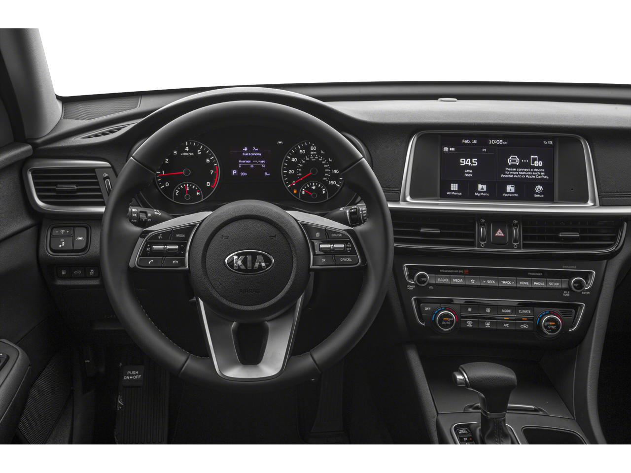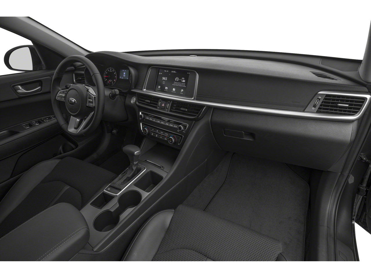 The vehicle keeps you comfortable with Auto Climate. Protect this unit from unwanted accidents with a cutting edge backup camera system. The rear parking assist technology on this Kia Optima will put you at ease when reversing. The system alerts you as you get closer to an obstruction. The Kia Optima features a hands-free Bluetooth® phone system. Lane Keep Assist in this mid-size car helps maintain safe driving by gently steering to stay within the lane. This 2019 Kia Optima offers Android Auto for seamless smartphone integration. Start this 2019 Kia Optima from inside with remote start. This model offers Apple CarPlay for seamless connectivity. The leather seats in this Kia Optima are a must for buyers looking for comfort, durability, and style. Set the temperature exactly where you are most comfortable in this vehicle. The fan speed and temperature will automatically adjust to maintain your preferred zone climate. The vehicle projects refinement with a racy metallic gray exterior.