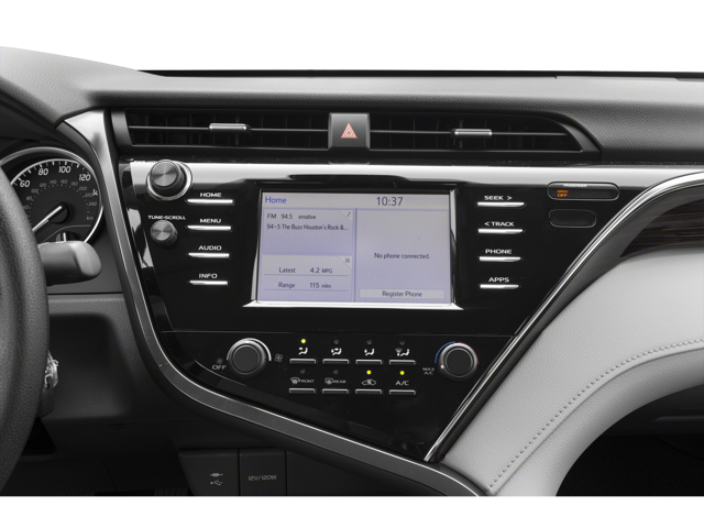 This Toyota Camry keeps you comfortable with Auto Climate. See what's behind you with the back up camera on this 2019 Toyota Camry . Apple CarPlay: Seamless smartphone integration for this model - stay connected and entertained on the go! The leather seats in the Toyota Camry are a must for buyers looking for comfort, durability, and style. Bluetooth® technology is built into this mid-size car, keeping your hands on the steering wheel and your focus on the road. Set the temperature exactly where you are most comfortable in the vehicle. The fan speed and temperature will automatically adjust to maintain your preferred zone climate. This unit has a 4 Cyl, 2.5L high output engine. This model emanates grace with its stylish gray exterior. Front wheel drive on this mid-size car gives you better traction and better fuel economy. Electronic Stability Control is one of many advanced safety features on this Toyota Camry.