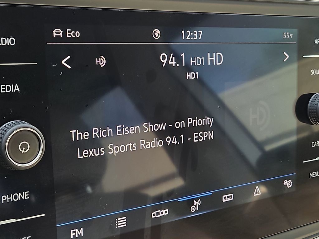 - Radio: Composition Media w/8" Touchscreen -inc: AM/FM/HD Radio and WMA/MP3/FLAC/CD player w/USB inputs, voice control, capability for in-vehicle 4G LTE enabled Wi-Fi (cellular data plan required; includes limited trial), capability for VW Car-Net services (capabilities for certain services vary; requires enrollment or subscription), 6-speaker sound system, Bluetooth® connectivity (for compatible devices), SiriusXM (w/3-month all access trial subscription), VW Car-Net App-Connect smartphone integration and interface (w/Apple CarPlay, Android Auto and MirrorLink) via USB and wireless inductive charger (for compatible devices)