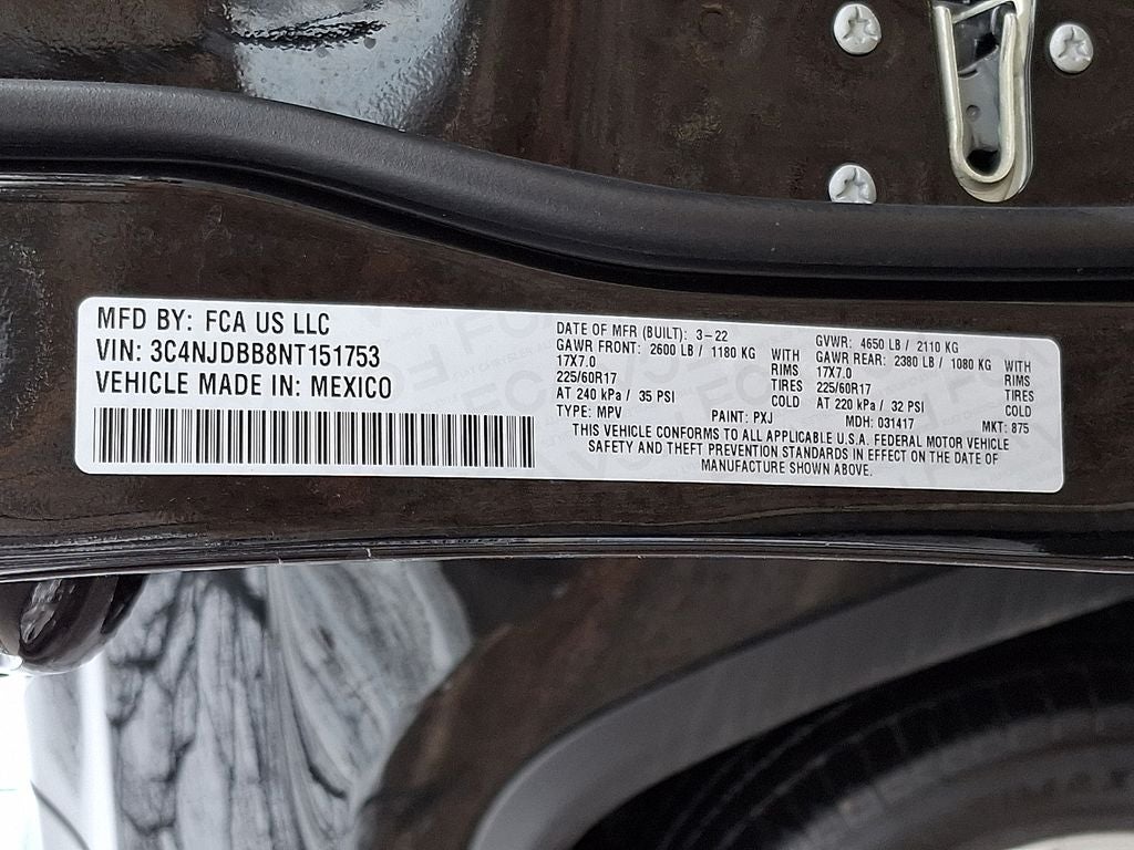 Bluetooth® technology is built into it, keeping your hands on the steering wheel and your focus on the road. This vehicle's Forward Collision Warning feature alerts drivers to potential front-end collisions. Apple CarPlay: Seamless smartphone integration for this 2022 Jeep Compass - stay connected and entertained on the go! This vehicle is a certified CARFAX 1-owner. It is equipped with the latest generation of XM/Sirius Radio. Start this vehicle from inside with remote start. This Jeep Compass comes equipped with Android Auto for seamless smartphone integration on the road. Protect this vehicle from unwanted accidents with a cutting edge backup camera system. This vehicle has four wheel drive capabilities. This mid-size suv is painted with a sleek and sophisticated black color. The Jeep Compass has a 4 Cyl, 2.4L high output engine. The Electronic Stability Control will keep you on your intended path. This mid-size suv has an automatic transmission.