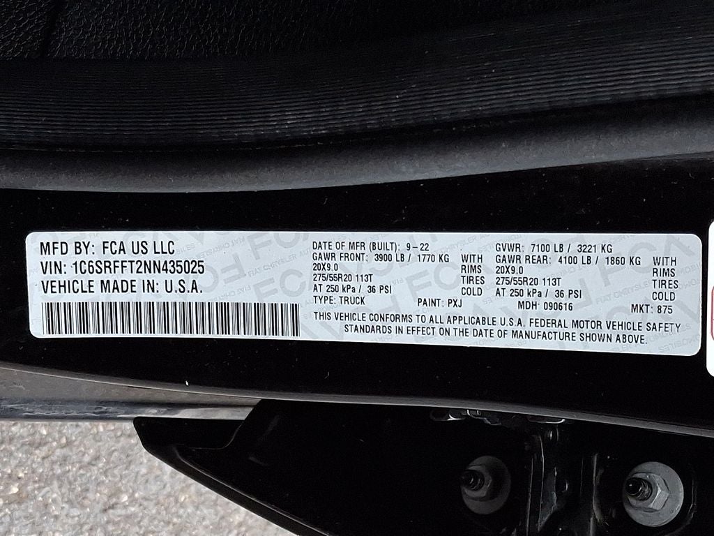 It has satellite radio capabilities. This unit features a hands-free Bluetooth® phone system. Good News! This certified CARFAX 1-owner vehicle has only had one owner before you. This Ram 1500 comes equipped with Android Auto for seamless smartphone integration on the road. It offers Apple CarPlay for seamless connectivity. Protect the vehicle from unwanted accidents with a cutting edge backup camera system. Our dealership has already run the CARFAX report and it is clean. A clean CARFAX is a great asset for resale value in the future. This 2022 Ram 1500 is equipped with the latest generation of XM/Sirius Radio. This Ram 1500 is painted with a sleek and sophisticated black color. This unit has adjustable pedals that are luxurious and safety conscious. This 1/2 ton pickup has a V8, 5.7L high output engine. This Ram 1500 has four wheel drive capabilities. The fog lights cut through the weather so you can see what's ahead.