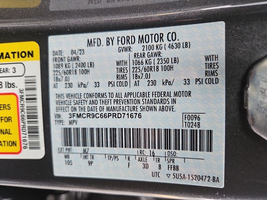 Ford Co-Pilot360 Assist+: Evasive Steering Assist; Voice-Activated Touchscreen Navigation System; Intelligent Adaptive Cruise Control with Stop and Go. Tech Package: Bang & Olufsen Sound System; Wireless Charging Pad; HD Radio; Universal Garage Door Opener (UGDO). Equipment Group 300A: 18" Ebony Black Wheels; 3.80 Axle Ratio; 1.5L EcoBoost Engine; 8-Speed Automatic Transmission; 225/60R18 All Season Tires Bsw; Leather Trimmed Heated Sport Contour Bucket Seats; 4. 630 lbs GVWR; AM/FM Stereo. Power Moonroof. Cargo Management System. **Equipment listed is based on original vehicle build and subject to change. Please confirm the accuracy of the included equipment by calling the dealer prior to purchase.**